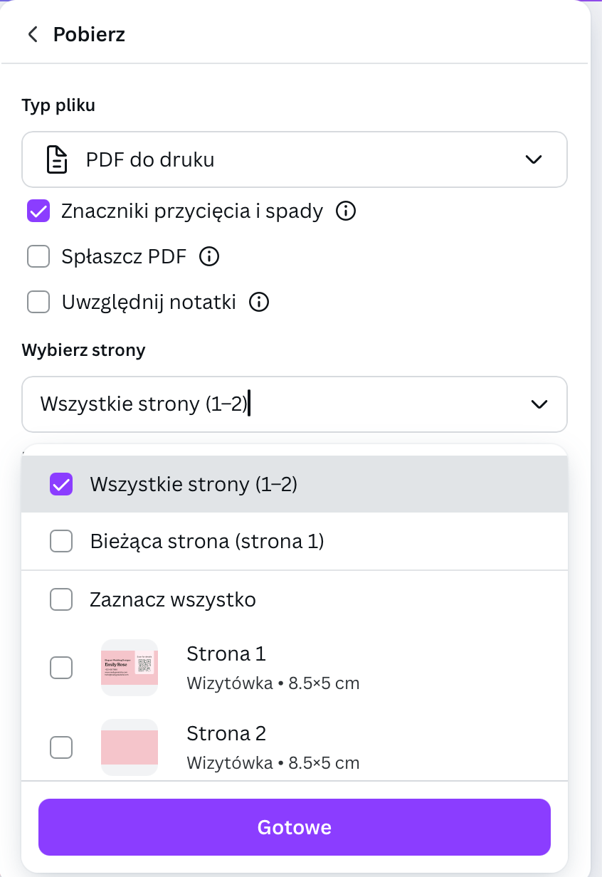 Typ pliku: wybierz PDF do druku.